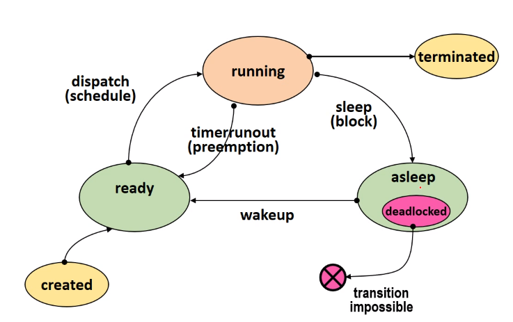 Deadlock 은 asleep 상태에서 무한대기를 합니다.