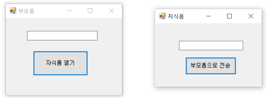 자식 폼의 TextBox 내용을 부모 폼으로 전달하는 간단한 예제를 구현해볼 겁니다.