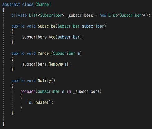 쉬운 예시를 들자면 Subject 는 유투브 채널