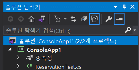 코드의 클래스는 ReservationTest.cs 과 UnitTest.cs 로 구성되어 있습니다. .cs 파일에 복사해서 테스트 해보시면 어떤식으로 구동이 되는지 알 수 있습니다. 테스트 방법은 상단에 테스트 -> 모든 테스트 실행 을 통해서 해볼수 있습니다.