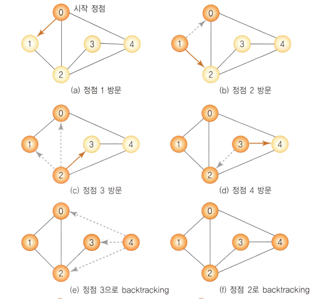 - 깊이 우선 탐색은 미로를 탐색하는 방법과 비슷하다. 한 방향으로 막힐 때까지 이동하다가 더 이상 이동할 수없게 되면 가장 가까운 갈림길로 돌아와 다시 막힐 때까지 한 방향으로 이동하는 것을 반복하는 것이다.