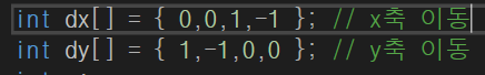 그리고 for 문을 통해서 상하좌우를 한 번씩 탐색하게 됩니다.