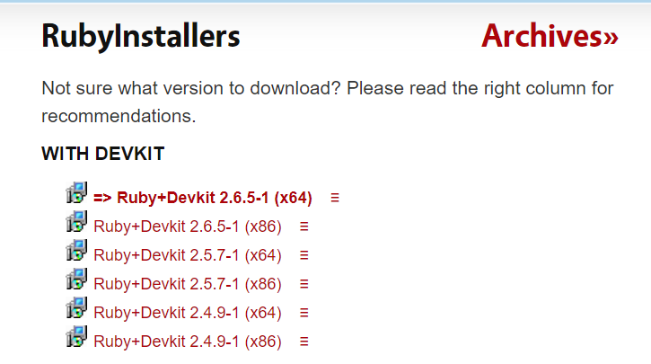 3. RubyInstaller (Windows) Click !