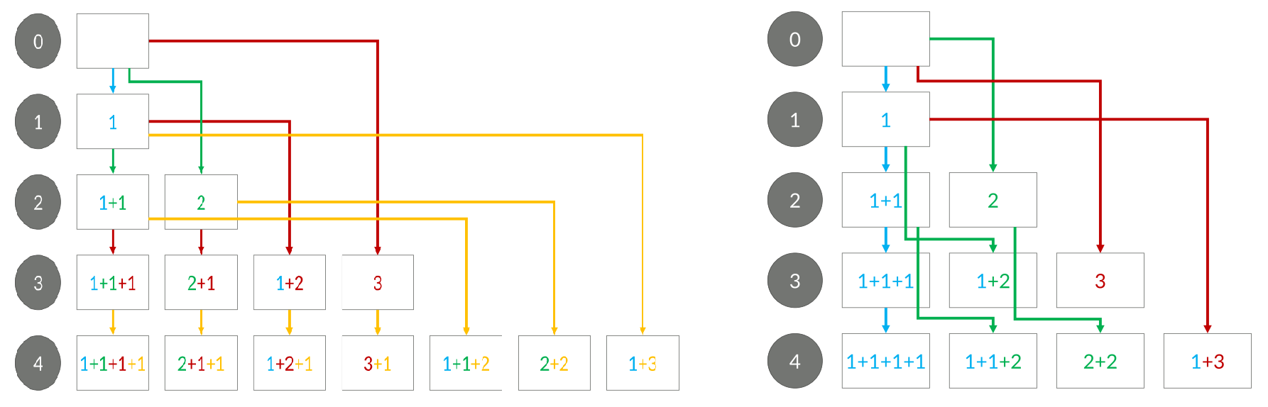 사용한 동전의 구성이 같은데, 순서만 다른 것은 같은 경우이다.