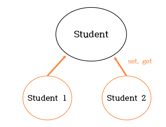 검은색의 Student 는 싱글톤 패턴의 클래스로 메모리가 할당된 영역이다.
